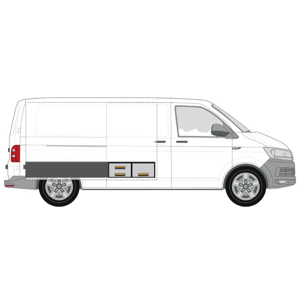 De kortare lådorna så som 600 mm eller 875 mm är perfekta att ha i sidodörren i medelstora bilar. Väljer du den som är 600 mm kan du dessutom ibland få plats med 2 lådor ut genom varje sidodörr. (om bilen har sidodörr på båda sidor).